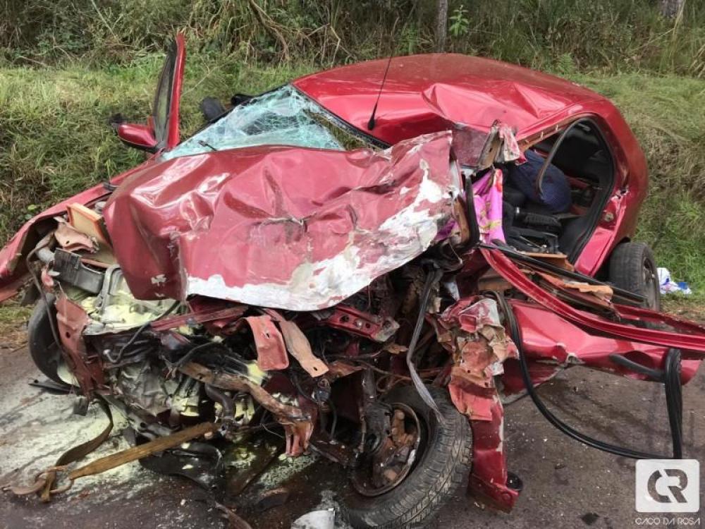 O caminhão fazia sentido Catanduvas/Joaçaba e o Palio e a caminhonete Joaçaba/Catanduvas. O motorista do Pálio teria se distraído para pegar um objeto, invadiu a pista contraria e bateu de frente contra o caminhão que saiu da pista. Após a colisão o pálio foi arremessado contra a caminhonete, que capotou.