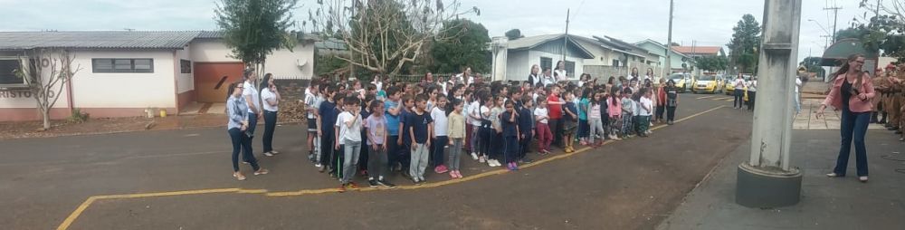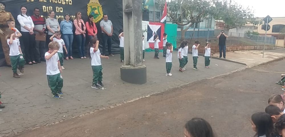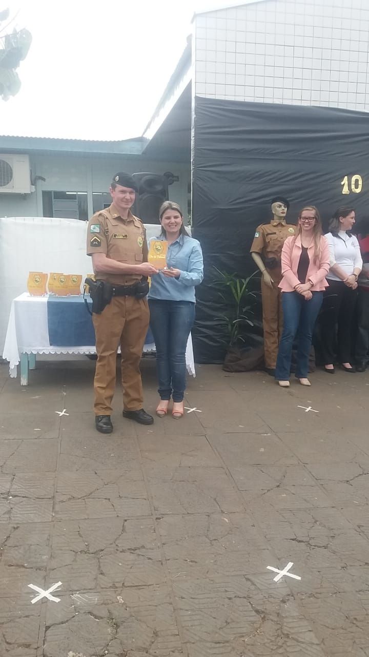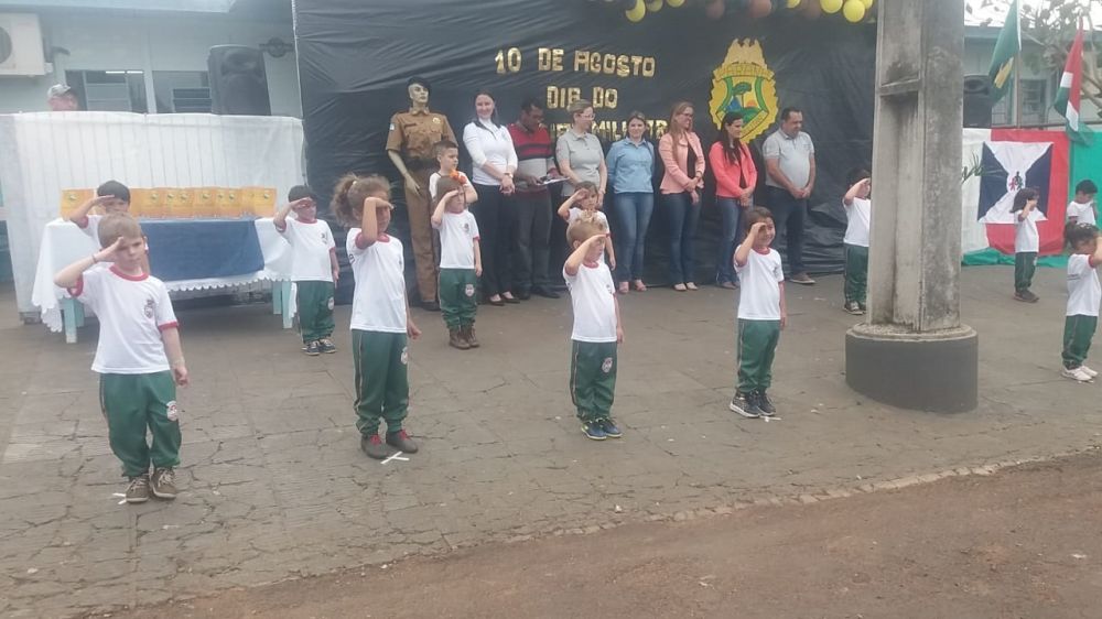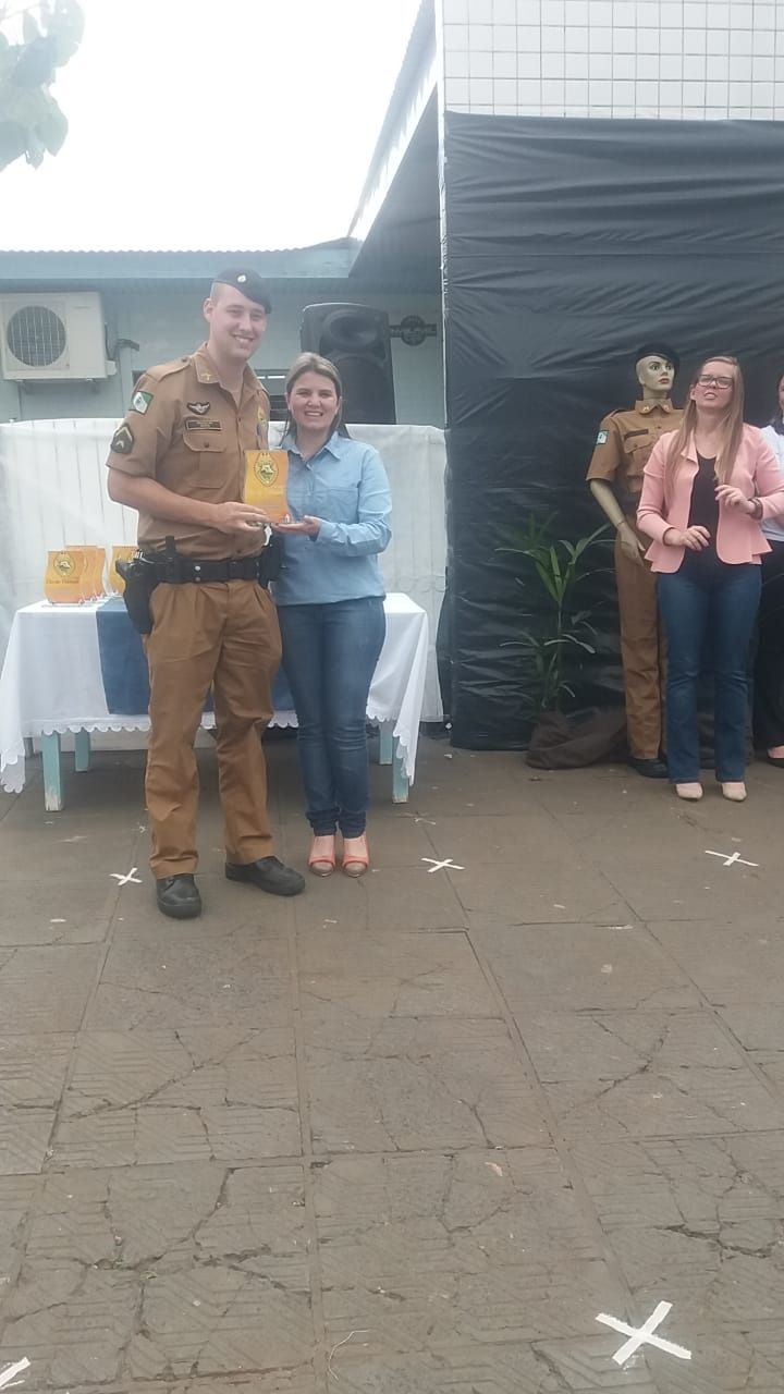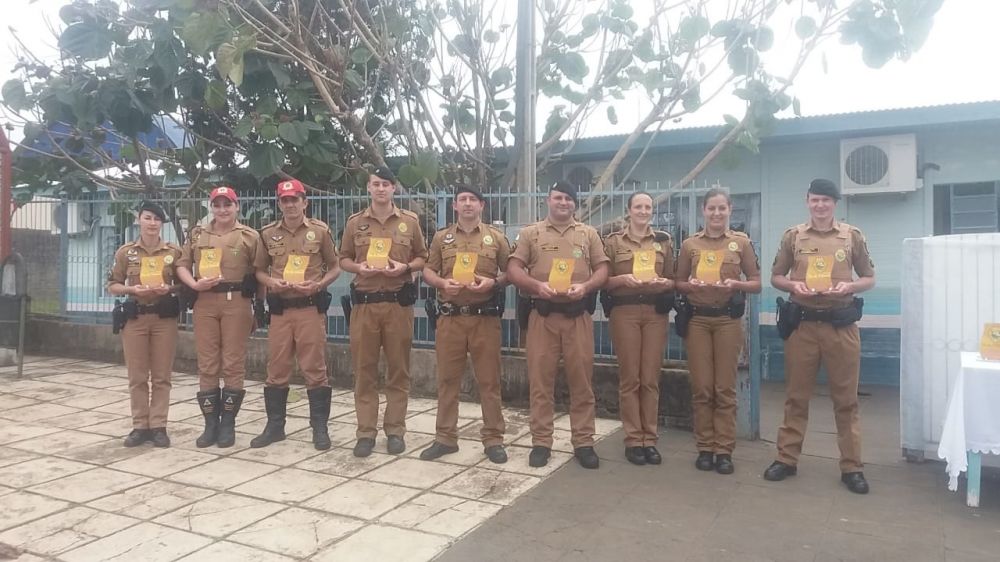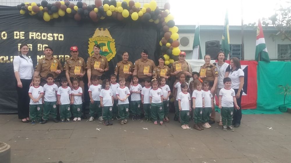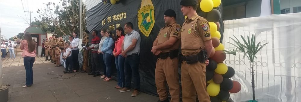 Hoje (08) 09 policiais, que atuam no Município, região e nas rodovias receberam homenagem quanto ao “Dia do Policial” da Escola Municipal Coronel Santiago Dantas. Com mais de 150 alunos presentes, foi relembrada a história da Polícia Militar no Paraná, com direito a apresentação da turma do Jardim I e entrega de homenagem em forma de troféu.