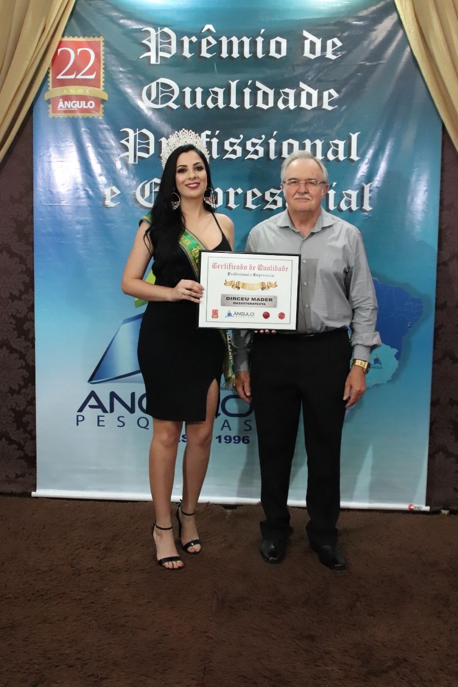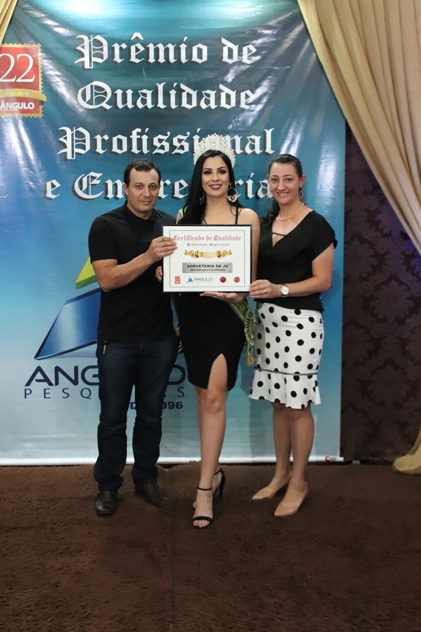 No último sábado, dia 30, em um jantar festivo na Associação Atlética Banco do Brasil, AABB, o Instituto Ângulo de Pesquisas, realizou a entrega dos troféus e certificados às empresas e personalidades que conquistaram o prêmio de “Qualidade profissional e Empresarial do ano de 2019 em Chopinzinho”.