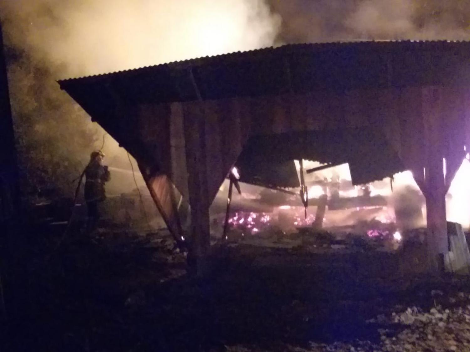 Um barracão de aproximadamente 150 metros quadrados, de propriedade de Anselmo Moretto foi totalmente consumido pelo fogo.