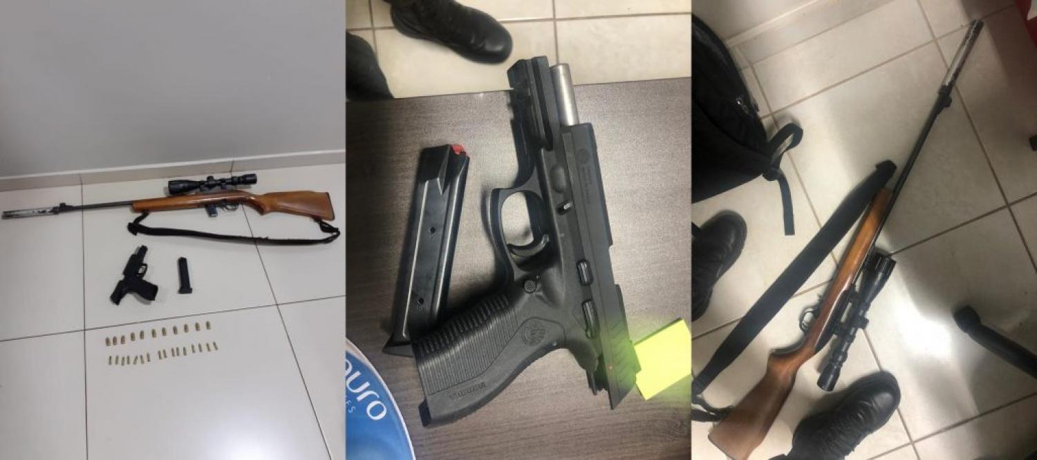 Além disso, em um barraco de madeira existente no local a Polícia Ambiental apreendeu um rifle CBC calibre 22 com luneta, silenciador e 16 munições. O homem que se apresentou como proprietário do armamento foi preso em flagrante e encaminhado juntamente com as armas, munições e petrechos de pesca à Delegacia de Polícia Civil de Pato Branco.