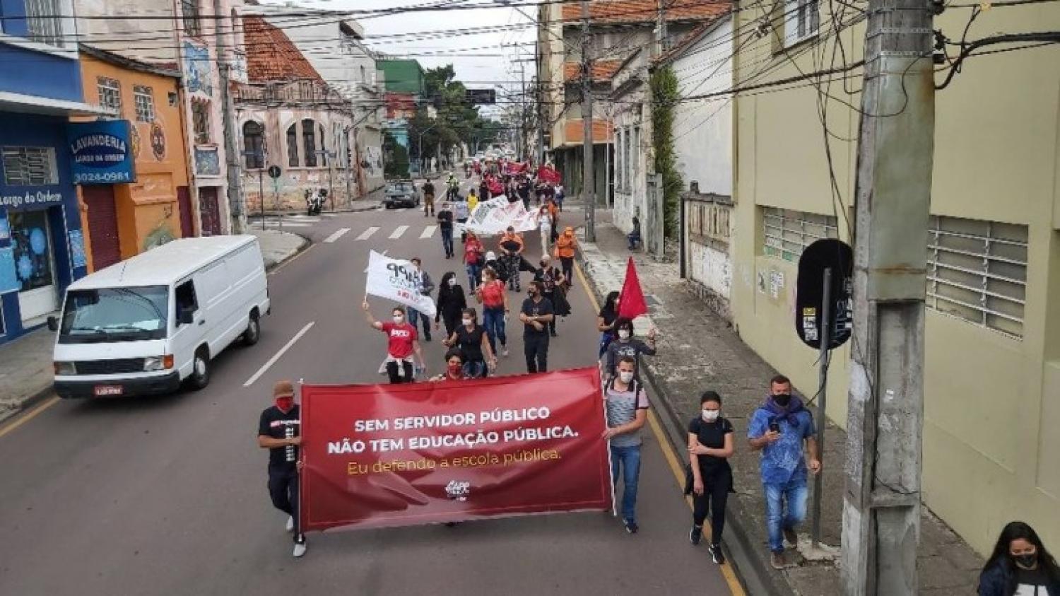 Um protesto realizado por centenas de professores em frente ao Palácio Iguaçu na manhã desta terça-feira (17), pediu a anulação do Processo Seletivo Simplificado (PSS) em 2021. A ação foi liderada pelo Sindicato dos Trabalhadores em Educação Pública do Estado do Paraná (APP-Sindicato). Segundo os manifestantes, o Governo desconhece a realidade da educação no Paraná e ameaça demitir mais de 30 mil profissionais em meio à pandemia. A Secretaria de Educação e do Esporte (SEED) disse, em nota enviada à Banda B, que o PSS/2021 foi construído com diálogo com a comunidade dos professores e ressaltou que continuará ouvindo os pedidos dos professores.