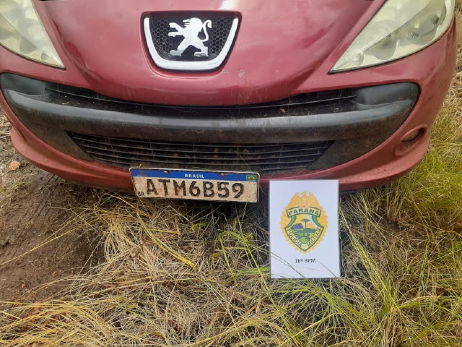 Nesta sexta-feira, dia 29, durante patrulhamento no Bairro Três Pinheiros, em Candói, a Polícia Militar avistou um veículo Peugeot placas ATM-6B59, parado em uma estrada vicinal, ao lado da BR 277, próximo ao trevo de acesso para o Candói.