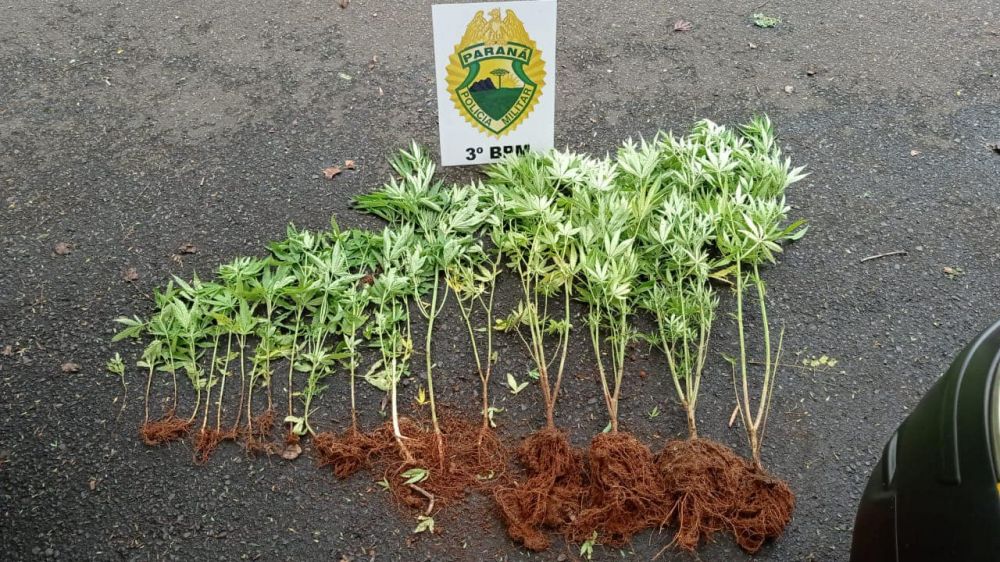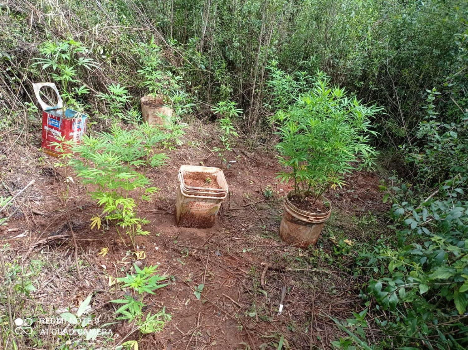Diante das informações, a equipe policial deslocou até o endereço citado na denúncia, porém não localizou os moradores do imóvel. Na sequência os policiais realizaram buscas na propriedade, vindo a encontrar em meio a mata, uma plantação de vegetação análoga à Cannabis Sativa (maconha), contendo 19 pés de diversos tamanhos, alguns cultivados em baldes e latas, e outros diretamente no solo, os quais foram apreendidos e encaminhados ao 2º Pelotão de Policia Militar de Chopinzinho e posteriormente encaminhados a Delegacia de Polícia Civil, para os demais procedimentos cabíveis.