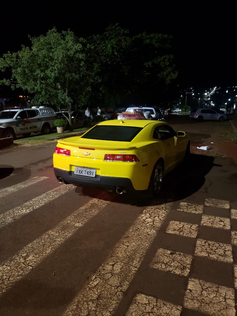 Foi localizado na ocorrência um revólver calibre 38 escondido em um fundo falso embaixo do banco do caroneiro de um camaro amarelo.