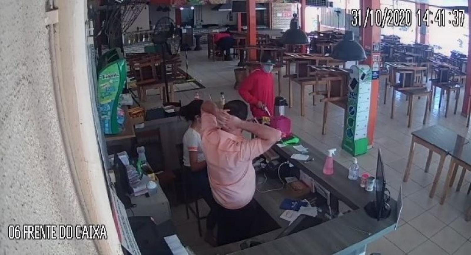 Por volta das 23:30 desta segunda feira, dia 08, uma mulher entrou em contato com a Polícia Militar do Candói, a qual relatou que na BR 373, comunidade da Paz, no momento em que ela se preparava para fechar o caixa do restaurante, foi surpreendida por um indivíduo, de estatura média, moreno, trajando blusa vermelha, calção de tactel, com detalhes em roxo e de boné escuro, o qual fazendo menção de estar portando uma arma de fogo, proferiu ameaças à solicitante, exigindo que ela entregasse todo o dinheiro do caixa. Após isso, o autor retirou-se do local, tomando rumo sentido a Vila da Paz.