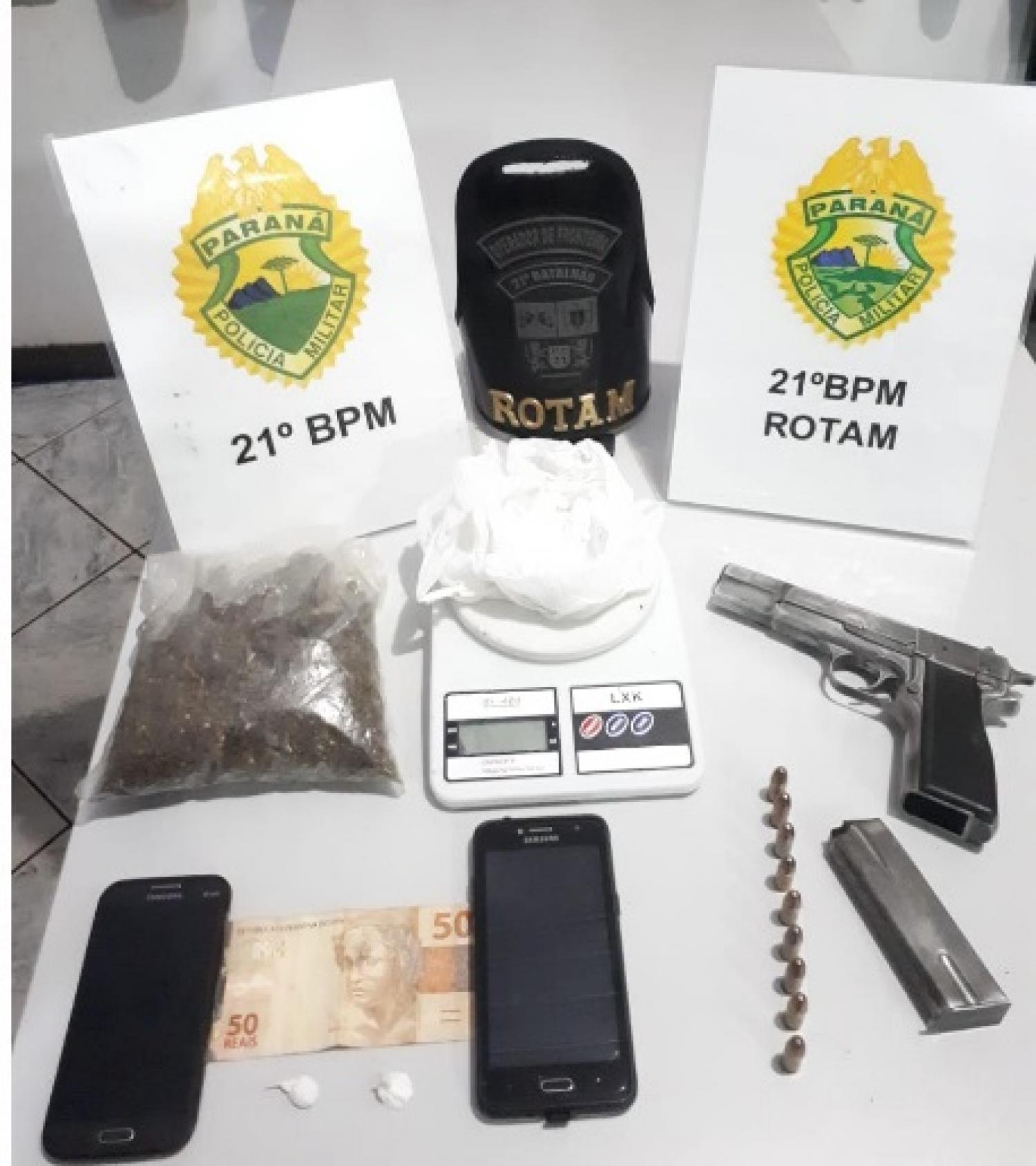 A droga, arma, munições e os envolvidos foram encaminhados pra a 19ª SDP.