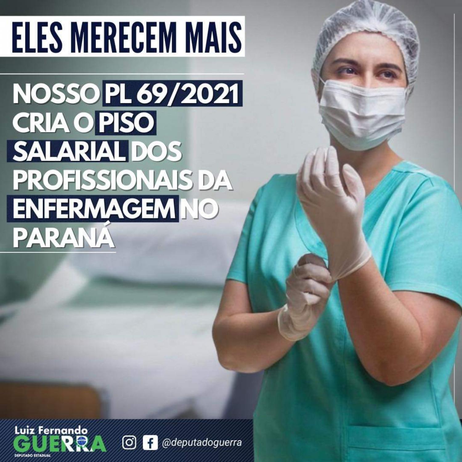 O deputado estadual Luiz Fernando Guerra protocolou nesta semana, na Assembleia Legislativa do Paraná (Alep), o Projeto de Lei n.69/2021 que prevê a adoção do piso ético indicado e aprovado pelo Conselho Regional de Enfermagem (Coren/PR) e homologado pelo Conselho Federal de Enfermagem (Cofen), como piso salarial regional aos profissionais de enfermagem que atuam no Estado.
