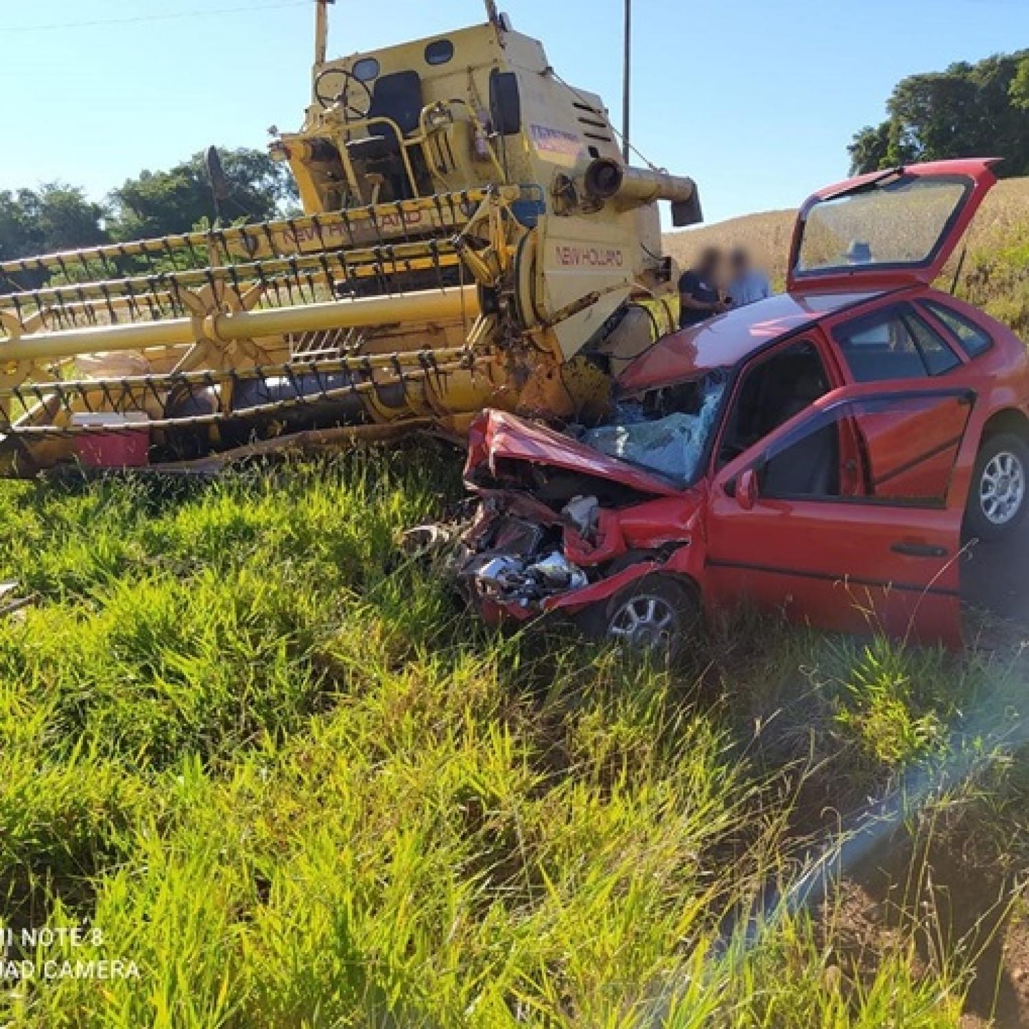 Um homem ficou ferida após uma colisão entre um carro e uma colheitadeira por volta das 8 horas desta quinta-feira (11), na Comunidade do KM 5, zona rural de Santo Antônio do Sudoeste.