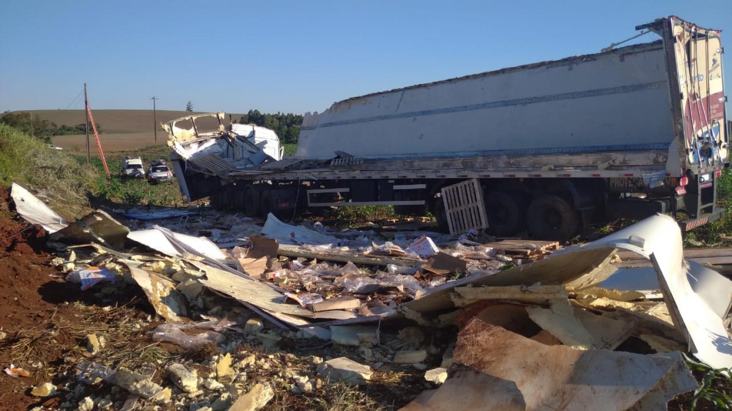 A câmara fria estava carregada com carne de frango de um frigorífico da cidade de Dois Vizinhos e seguia para o porto de Itajaí- SC. O veículo não chegou a tombar, porém apresentou danos de grande monta. O Motorista não apresentou ferimentos e dispensou atendimento. A carga de carne de frango foi saqueada. A Polícia Rodoviária Estadual Posto de Chopinzinho atendeu a ocorrência.