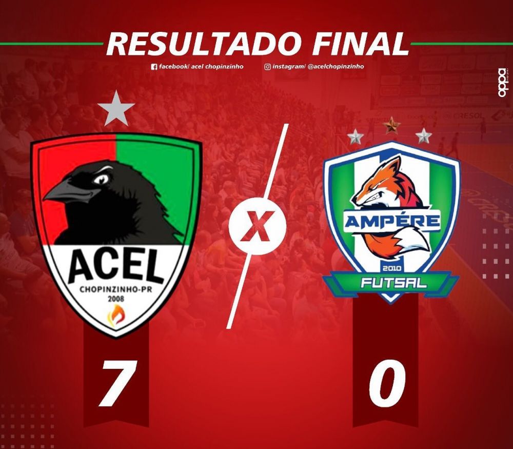 A estreia da equipe da ACEL-Chopinzinho no Campeonato Paranaense de Futsal-Série Ouro, não poderia ter sido melhor. Jogando em casa, a equipe do técnico Paulinho Gambier, enfrentou o time do Ampére Futsal e aplicou 07 a 00, sendo a maior goleada da rodada de abertura da competição.
