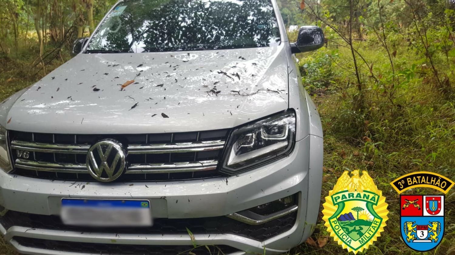 Nesta segunda feira, dia 29, após renderem os funcionários de uma residência, na área central de Pato Branco, indivíduos levaram um veículo VW/Amarok, e após imediatas diligências, equipes policiais militares obtiveram êxito na localização da caminhonete.