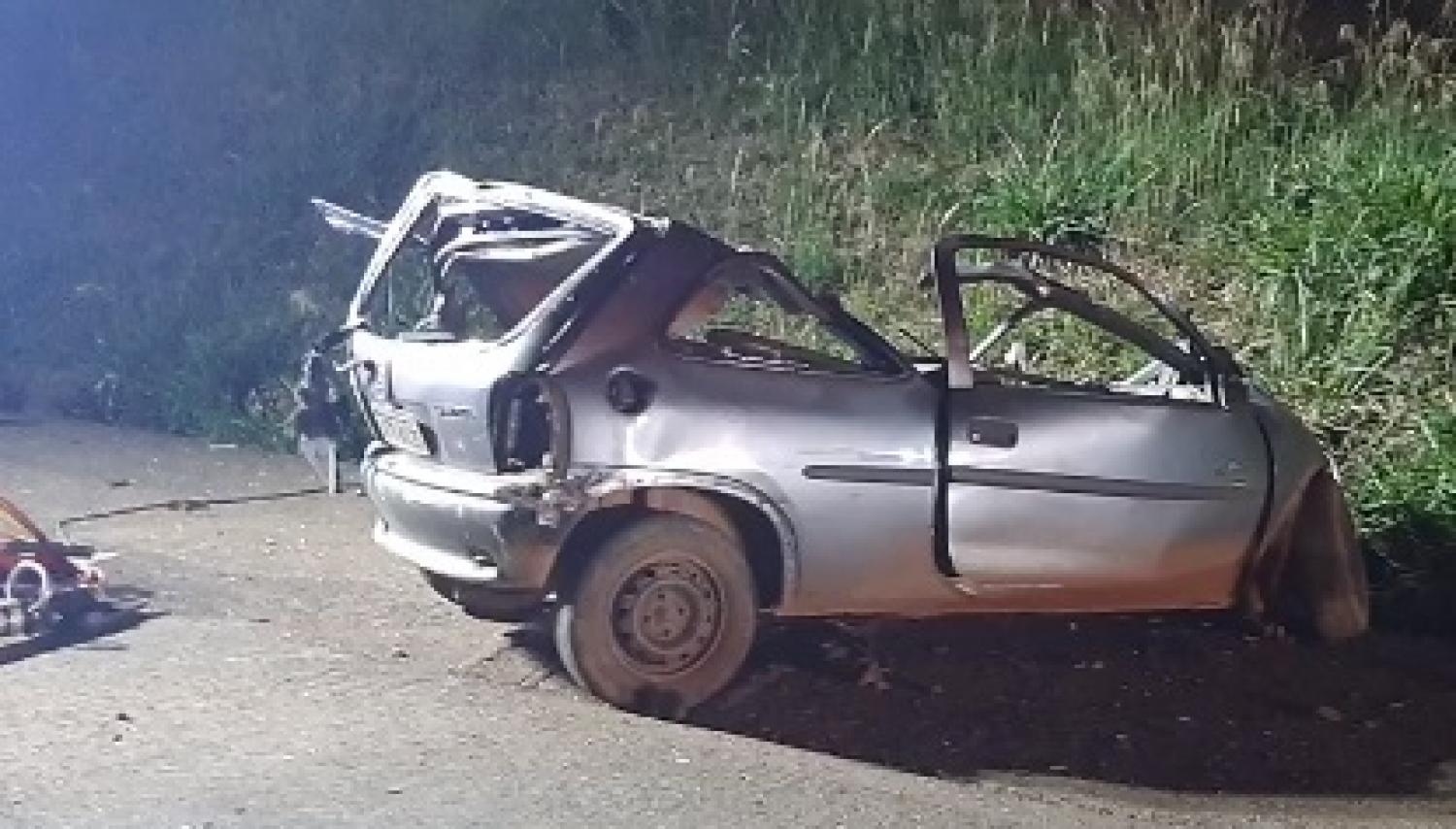 Um grave acidente de trânsito deixou três mortos na noite desta sexta-feira (02), na rodovia PR-483, em Francisco Beltrão, sentido a Ampére. A colisão foi entre um veículo Corsa de Francisco Beltrão e dois caminhões. Equipes do SAMU e do Corpo de Bombeiros foram acionados para prestar atendimento e constataram que três ocupantes do carro estavam em óbito, os quais foram identificados como: Pedro Moraes, 57 anos; Ademar Thomas, 34 anos e Aridiel Ivas, 26 anos.