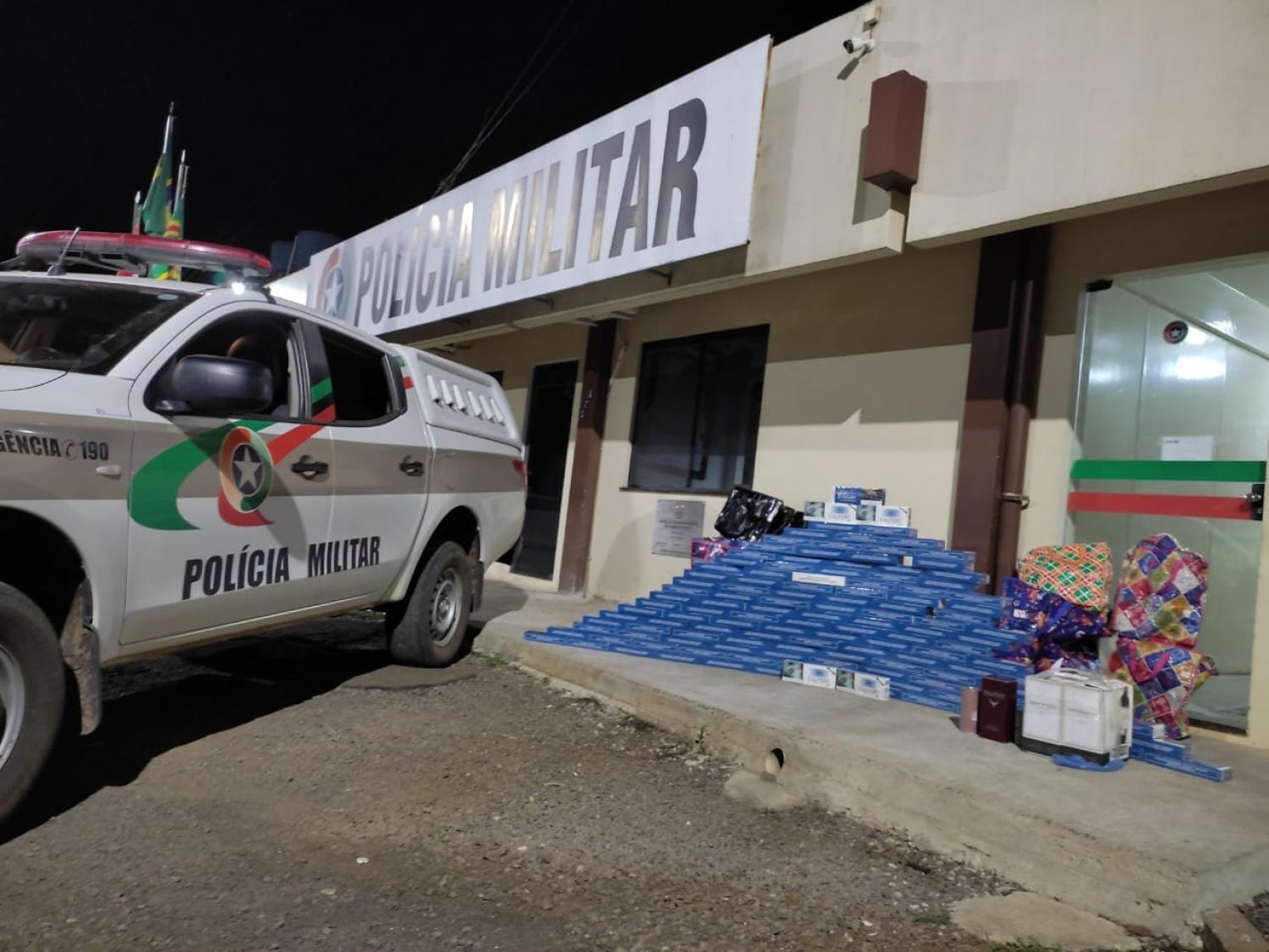 Foram localizadas no interior do veículo, 136 caixas de cigarros totalizando 1.360 carteiras, além de roupas, calçados, bebidas e perfumes oriundos do Paraguai. Também foi localizado, certa quantia de medicamentos abortivos.