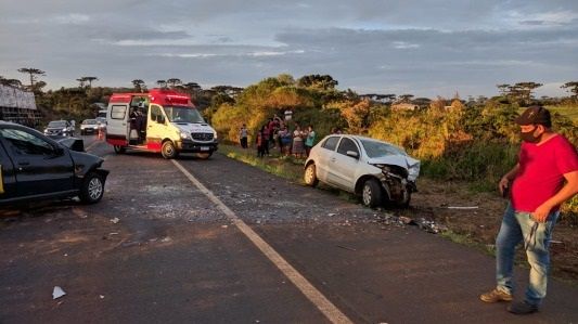 A colisão frontal envolveu um Fiat Palio com placas da cidade de Ponta Grossa e um Gol com placas de São Lourenço do Oeste-SC.
