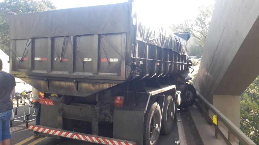 Um grave acidente foi registrado na tarde desta sexta-feira (23), no km 412, na Ponte do Rio Cavernoso, na BR 277, município de Cantagalo. Uma colisão envolvendo dois caminhões deixou um dos motoristas com ferimentos moderados e precisou ser encaminhado para o hospital São Lucas de Laranjeiras do Sul.