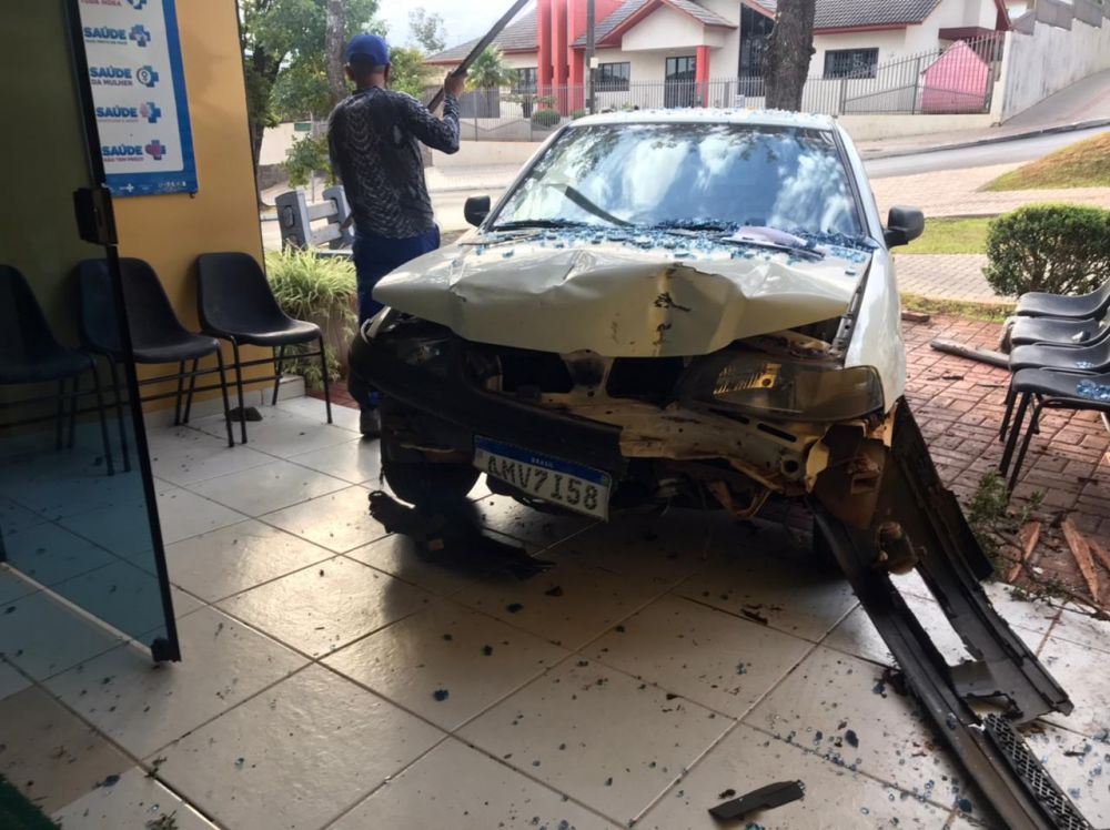 O vidro da UBS ficou estilhaçado, bancos foram arrancados e a recepção da Unidade de saúde, que é de concreto, foi partida ao meio.