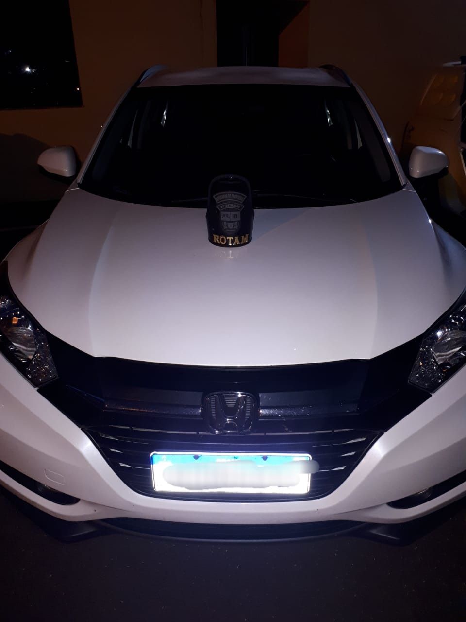 Diante das informações, foi deslocado até referida estrada rural e visualizado o veículo HRV ligado e com os faróis apagados. Na tentativa de abordar o veículo, o mesmo empreendeu fuga em alta velocidade pela estrada rural, e após aproximadamente 02 km adentrou em uma residência, sendo que o condutor empreendeu fuga a pé pelos fundos da residência, em uma área de mata.