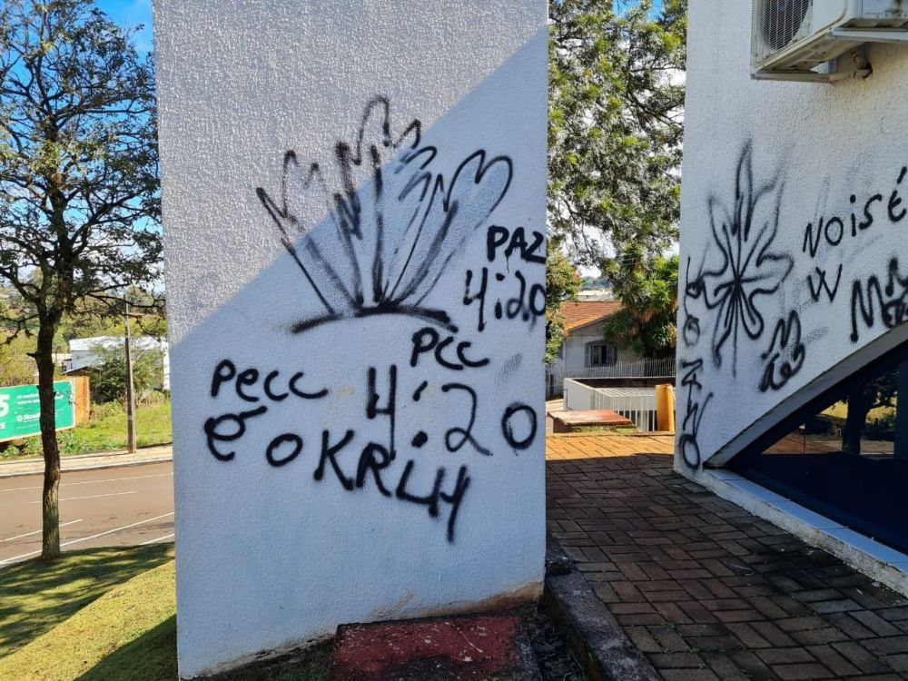 Infelizmente, As paredes da Unidade Básica de Saúde localizada na Praça dos Pioneiros em Coronel Vivida foi alvo de ato de vandalismo por parte de pichadores.