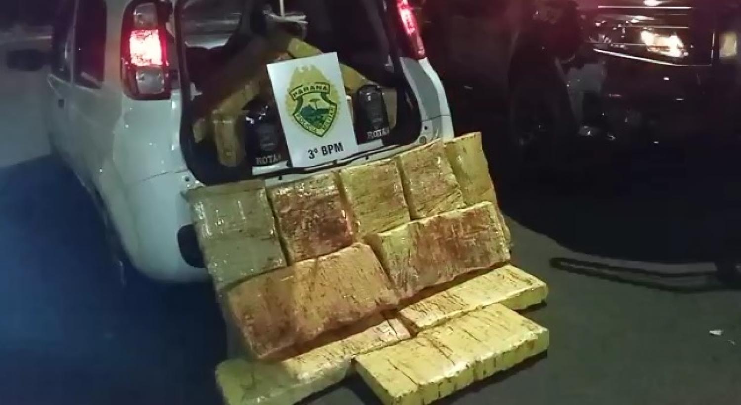 Após identificar os ocupantes dos dois veículos, durante vistoria no porta malas do Fiat Uno foi encontrado cerca de 350 quilos de maconha.