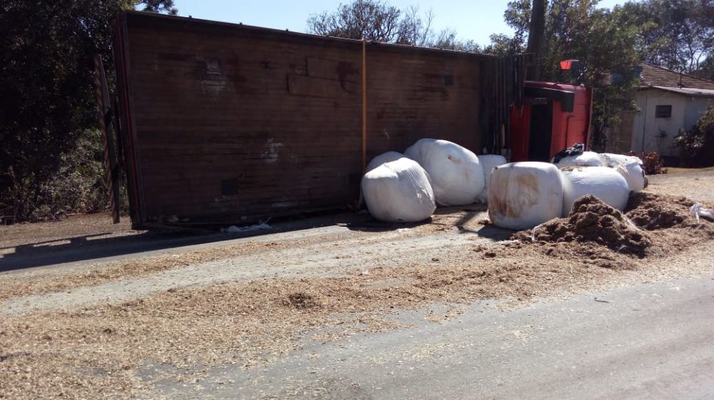 Após a batida o caminhão acabou tombando, fazendo com que a carga se espalhasse na pista e as margens da rodovia. O Volkswagen teve danos consideráveis, já a carreta, aparentemente danos de pequena monta.