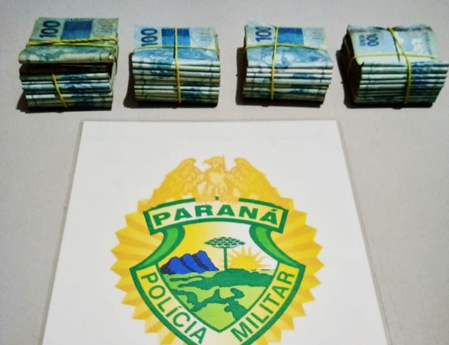 Diante do fato foi conduzido até a 2ª CIA da Polícia Militar de Laranjeiras do Sul, onde foi feito a contagem do dinheiro, aferindo a quantia de R$ 41.900,00 (quarenta e um mil e novecentos reais), sendo lavrado boletim de ocorrência e encaminhado o abordado e o dinheiro até a delegacia para os procedimentos cabíveis.