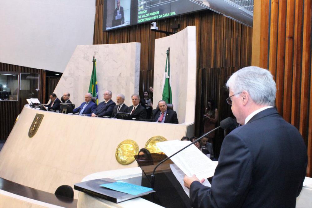 O chefe da Casa Civil Valdir Rossoni participou nesta segunda-feira (5), em Curitiba, da retomada dos trabalhos da Assembleia Legislativa em 2018. Representando o governador Beto Richa, o secretário fez a leitura da mensagem do Executivo com resumo da situação do Estado. A sessão foi comandada pelo presidente da Casa, deputado Ademar Traiano.