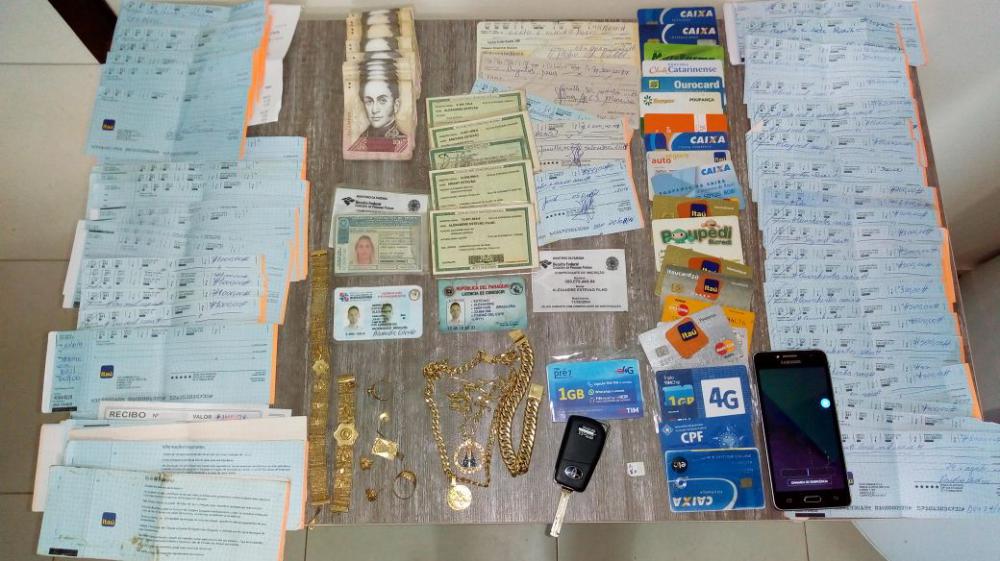 Após a abordagem, os policiais constataram que os cheques emitidos por eles eram de uma conta encerrada. Com eles foram encontrados mais de 50 cheques em nome de familiares e de terceiros, e ainda mais de vinte cartões de crédito, além de joias e outros objetos adquiridos através de golpes.