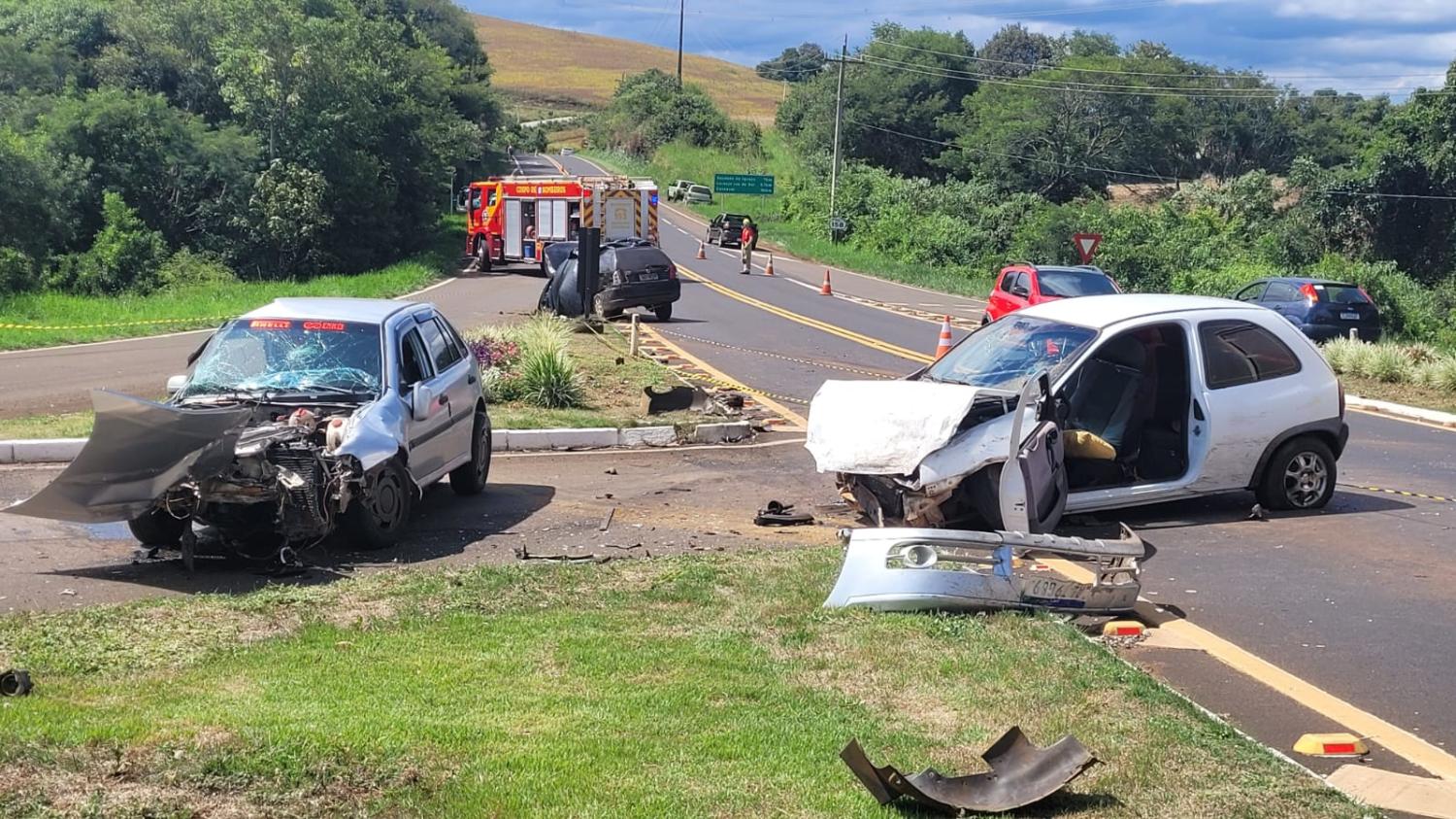 No início da tarde deste domingo, 22, um grave acidente envolvendo três veículos resultou na morte de duas pessoas na PR 158, no trevo de acesso para o município de Sulina.