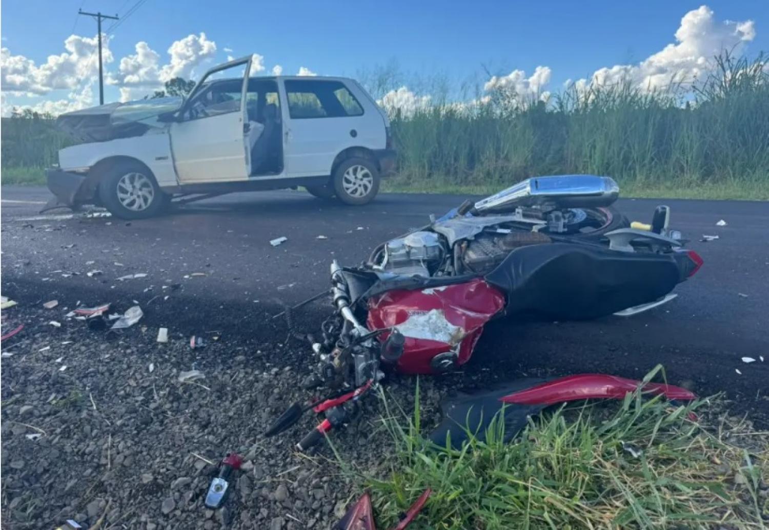 Envolveram-se na batida um Fiat Uno Mille, com placas de Ampére, e uma motocicleta Honda CB 300, com placas de Realeza ? embora o proprietário seja morador de Pinhal de São Bento. Conforme informações apuradas no local, o carro seguia no sentido Ampére?Pinhal de São Bento, enquanto a moto trafegava no sentido contrário. A colisão foi frontal.