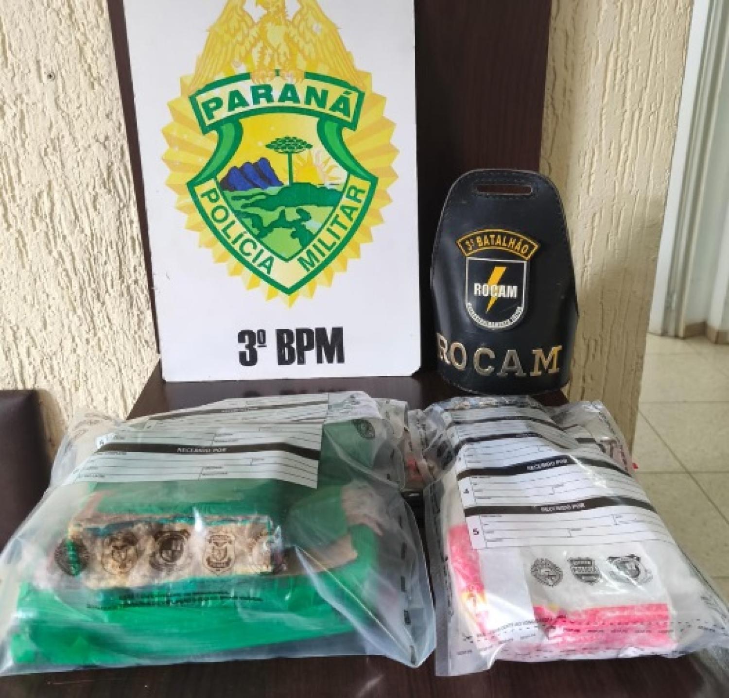 Durante buscas no veículo foram localizados três pacotes com crack que totalizou 2,656 kg, duas porções de cocaína que totalizou 939 gramas e duas carteiras de habilitação.