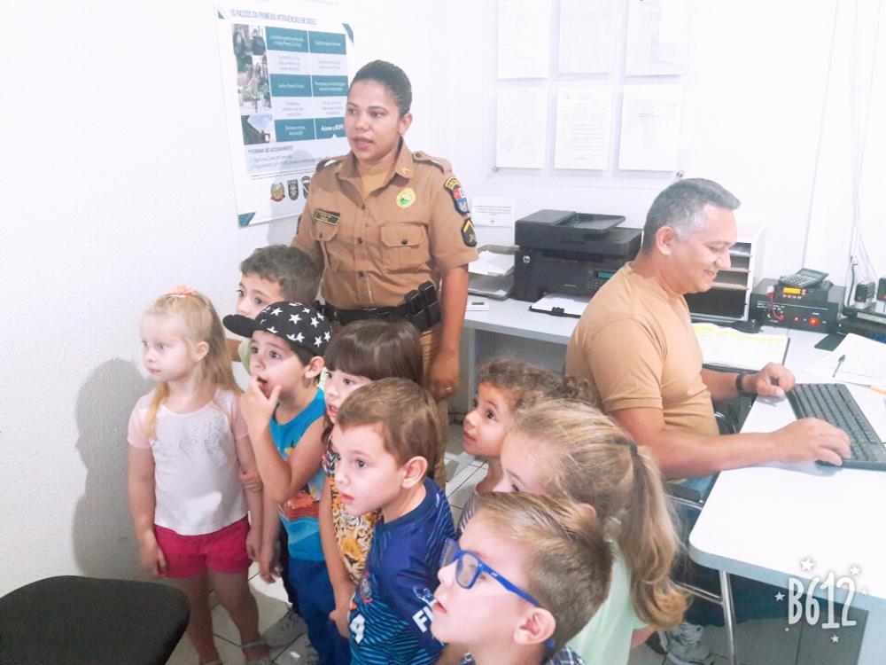Hoje, dia 23 de março, na sede do Pelotão PM de Chopinzinho, aconteceu mais um encontro do projeto Café da manhã com a PM. 17 alunos dos jardins IA da CMEI Excelência, juntamente com Pedagoga Fabiane e as Professoras Raquieli, Rosane, Francelaise, Ester e Thailini, tomaram café da manhã reforçado, tiveram palestras sobre fardamento, atividade policial, armamento utilizado, e sobre as viaturas. Conheceram também as dependências do Pelotao bem como a central de monitoramento e o COPOM. Para finalizar realizaram atividades fisicas militares. Este projeto que teve início no ano de 2017 visa a aproximação dos mais vulneráveis e das crianças com a Polícia Militar, através da educação e confianca, parceria que vem trazendo muitos beneficios às equipes policiais e aos visitantes.