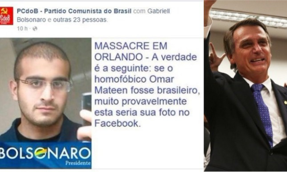 Na publicação, o PC do B disse que, se o homofóbico Omar Mateen fosse brasileiro, sua foto incluiria os dizeres Bolsonaro presidente.
