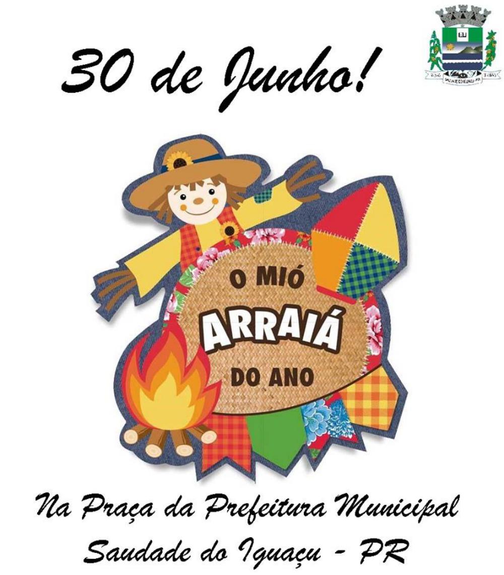 O 1º Arraiá na Praça acontecerá no sábado 30 de Junho, na praça da Prefeitura Municipal de Saudade do Iguaçu, e contará com barracas de comidas típicas, Gincana Caipira, Show com banda, cadeia do amor, decoração temática e é claro, a tradicional fogueira. Realizado pela Administração Municipal, em parceria com o Departamento de Cultura e Secretaria de Assistência Social, a festa ainda tem o apoio da Associação do Centro Cultural de Saudade do Iguaçu ACCSI.