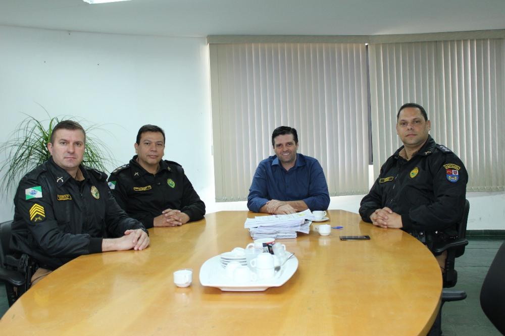 O prefeito Mauro Cenci recebeu em seu gabinete o Tenente Coronel Robertinho Dolenga, comandante do 3º Batalhão, Capitão Vicente, comandante da 3ª Companhia da PM com sede em Coronel Vivida e o Sargento Edvaldo.