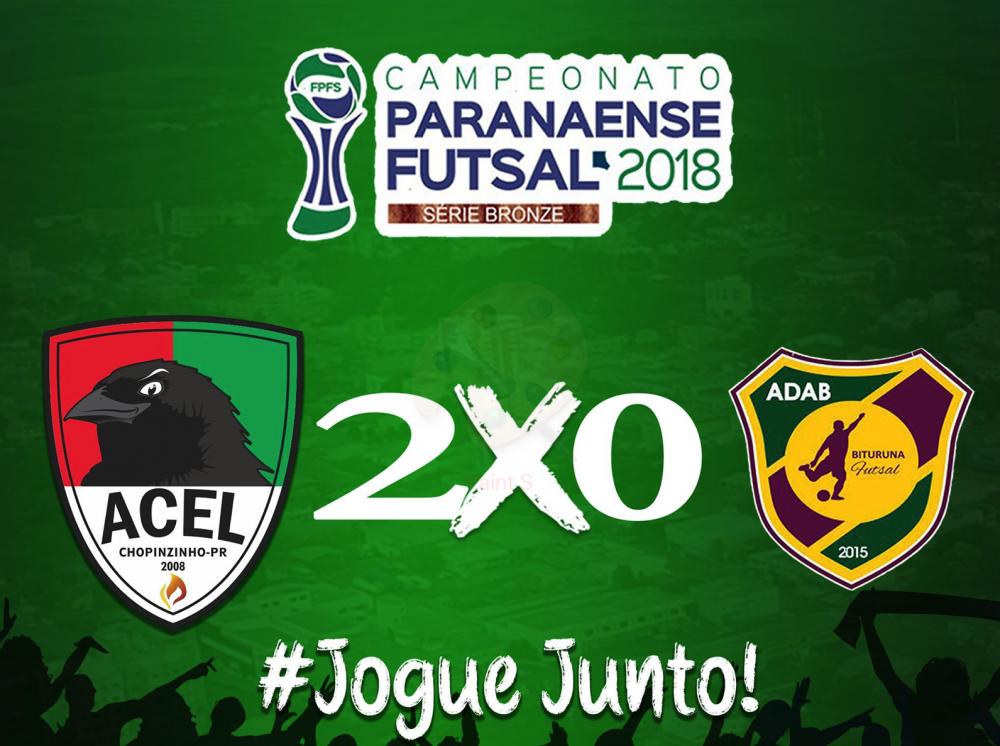 ACEL/CHOPINZINHO Recebeu na Noite de Sábado dia 28 a equipe de Bituruna e Venceu pelo placar de 2 x 0. A equipe já esta classificada para a próxima fase da competição mas o Resultado Garantiu a segunda colocação do grupo para Acel/Chopinzinho já que tem apenas mais uma rodada para ser disputada na primeira fase e não pode mais ser alcançada pelo Cantagalo. Os Gols só saíram no segundo tempo da partida e foram marcados por Paraná abrindo o placar e Ronaldinho fazendo o segundo. Na próxima rodada a Acel vai enfrentar fora de casa a equipe do Norte de Beltrão pela 14ª rodada do 2º turno dia 04 de agosto Sábado no Ginásio Sarará as 20H30.