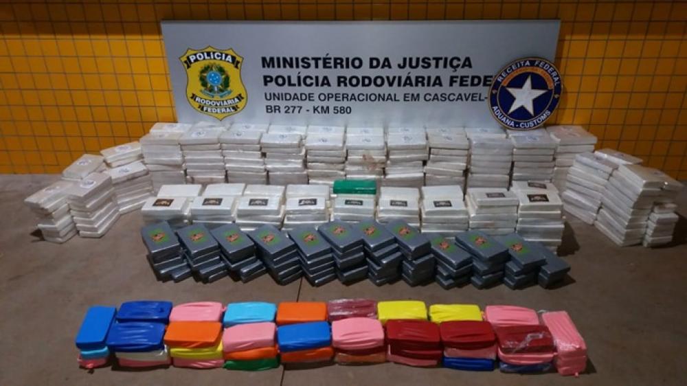 O ônibus, a droga, o condutor e os passageiros foram encaminhados para a Polícia Federal de Cascavel.