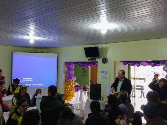 Ao final da palestra, todos os alunos da APAE receberam um presente surpresa. Os presentes somam o valor de R$ 12.000,00, que foi adquirido através das várias promoções realizadas pela Escola, em parceria com a Administração Municipal.