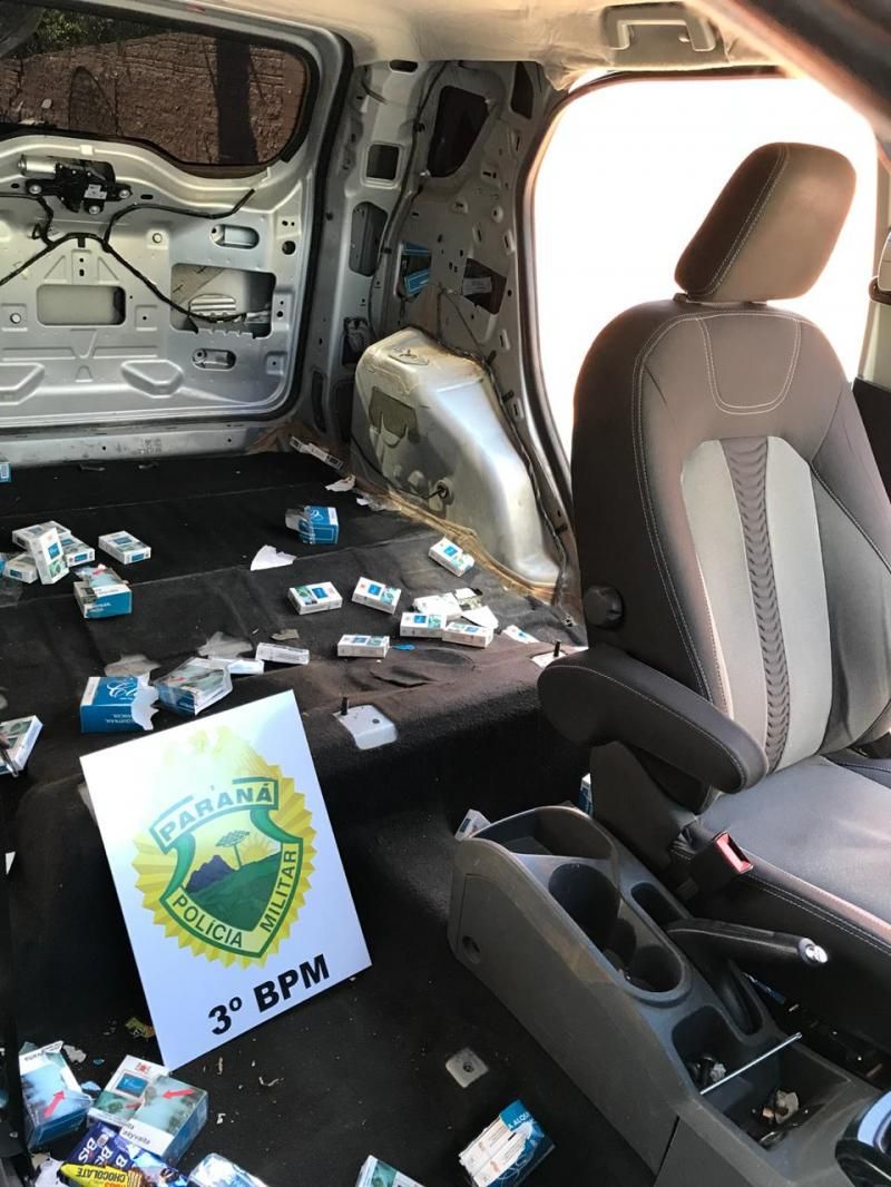 Mais adiante, em uma estrada rural, os policiais encontraram um veículo Ford Ecosport, placas AXL 5001 de Santa Teresinha de Itaipu, a qual estava abandonada e no interior foi encontrado uma grande quantidade de cigarros contrabandeados do Paraguai.