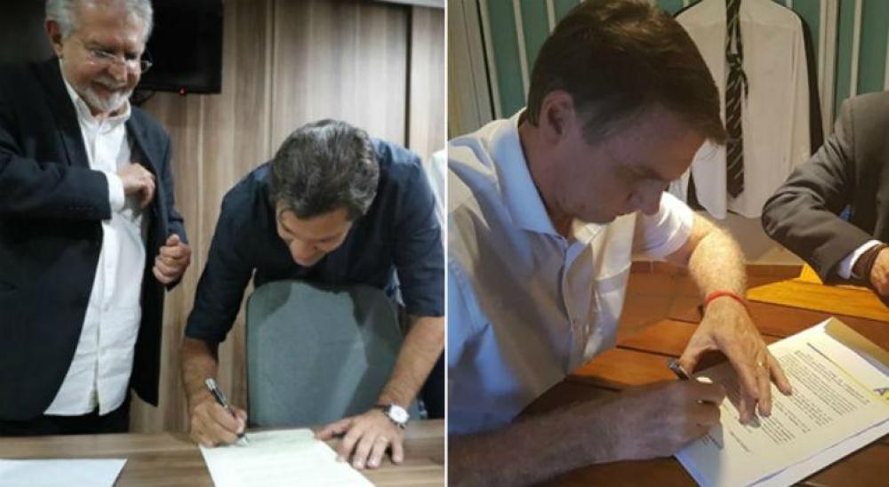 Candidato Jair Bolsonaro (PSL), assinou Termo de Compromisso no Rio - ABI/Direitos reservados DiálogoDe acordo com o presidente da entidade, o compromisso assinado com Bolsonaro e com Haddad foi resultado de um processo que começou em um primeiro contato para saber se ambos concordavam em assinar o documento, que em seguida foi encaminhado para análise de cada um. Bolsonaro assinou no Rio e Haddad em São Paulo.