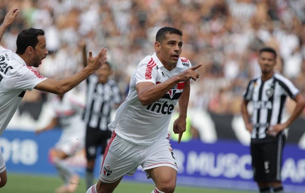 O São Paulo não conseguiu manter a liderança do Campeonato Brasileiro na tarde deste domingo. Precisando da vitória, o time dirigido por Diego Aguirre saiu atrás em um primeiro tempo de fraca atuação defensiva, reagiu na etapa final, mas não passou de um empate por 2 a 2 com o Botafogo, no estádio do Engenhão.
