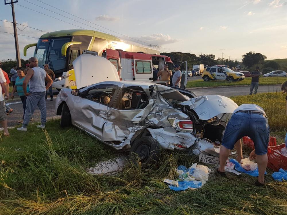 Com a batida, o Renault Logan ficou totalmente destruído e o condutor Eroni José Frizon e os caroneiros Edina Alves dos Santos e Francisco Valdomiro Barao, tiveram ferimentos e foram encaminhados pela equipe do SAMU para o hospital em Chopinzinho.