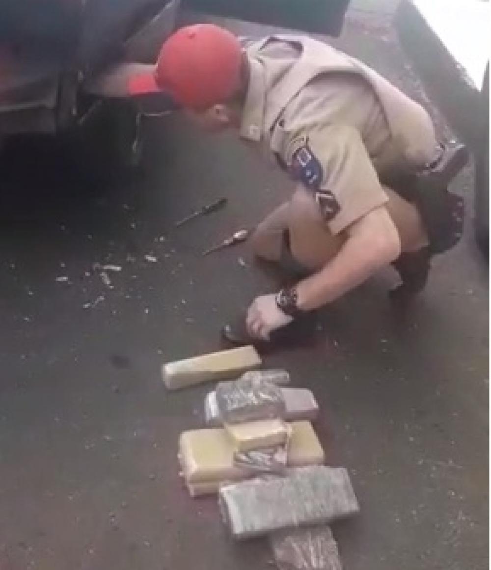 Ele admitiu que estava transportando drogas, e durante buscas foram encontrados entre a lataria do veículo e no para choques 64 tabletes de maconha de tamanhos diversos que pesaram 48,4kg de maconha.
