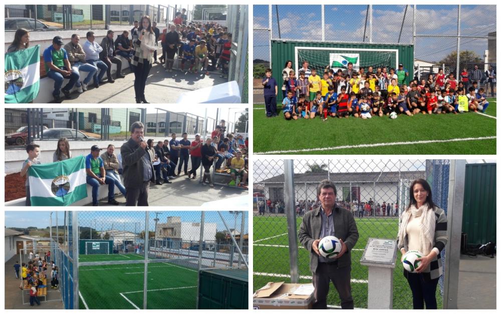 Após o descerramento da faixa e o pontapé inicial dado pelo prefeito e pela secretária de Educação, aconteceu a primeira partida de futebol entre os alunos do quarto e do quinto ano do Centro de Educação de Rio Bonito do Iguaçu (Cerbi).