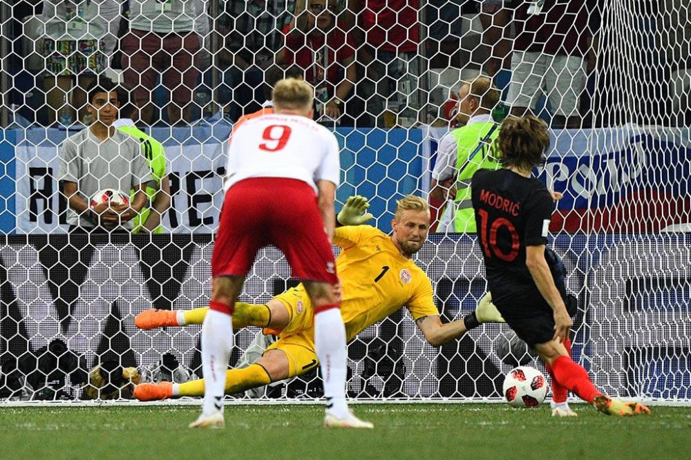 Foi também com uma cobrança de pênalti que a Croácia teve a grande oportunidade de decidir o jogo mais cedo. Aos oito minutos da etapa derradeira do tempo extra, Rebic foi derrubado por Mathias Jorgensen dentro da área. Modric se apresentou para a cobrança da penalidade e parou na defesa de Schmeichel, que acabaria superado pelo colega Subasic pouco depois, na acirrada disputa da marca da cal.