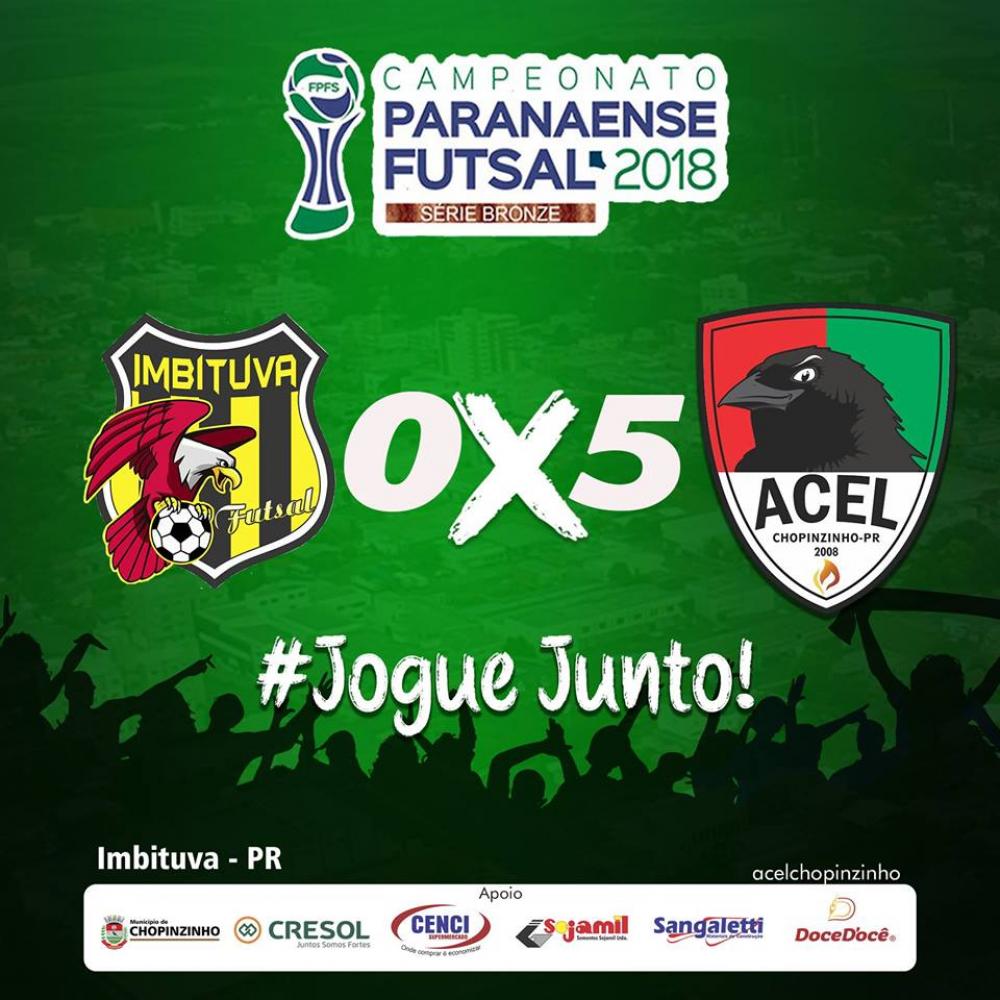 Jogando fora de casa no último sábado, dia 30, a equipe da ACEL/Chopinzinho venceu o Imbituva Futsal pelo placar de 05 a 00 pelo Campeonato Paranaense de Futsal, série bronze.
