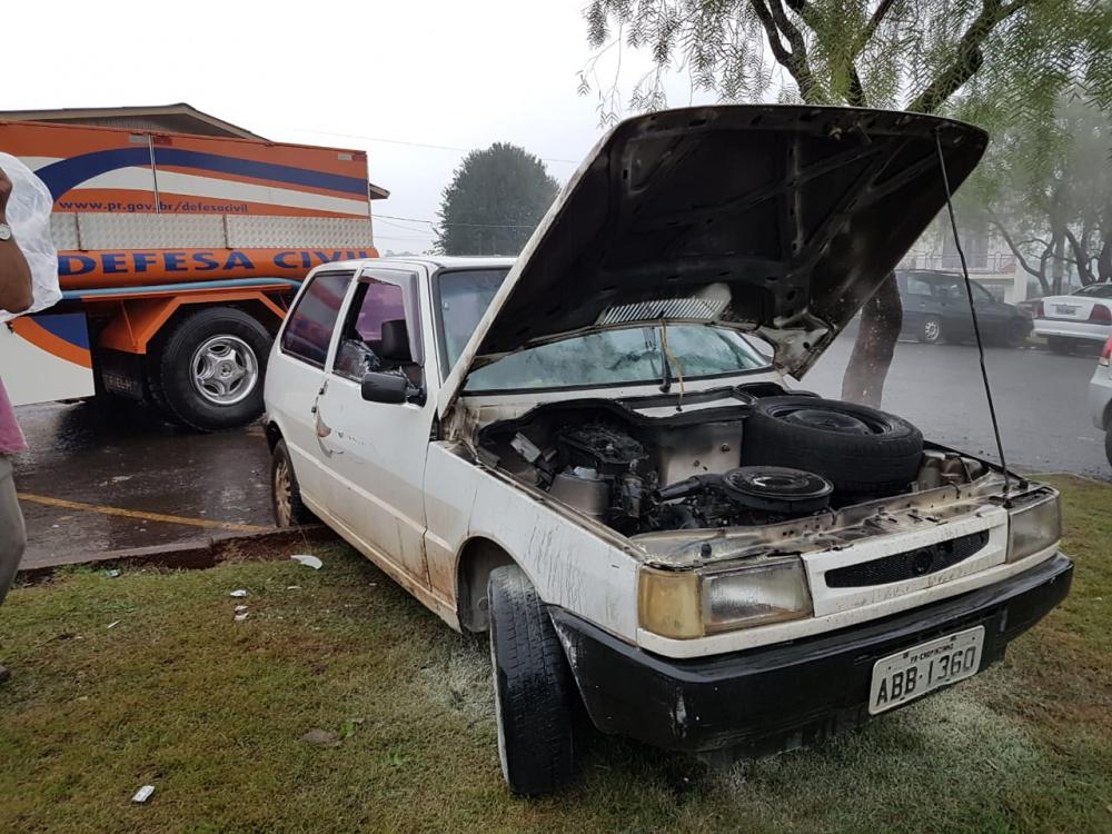 No local foi constatado que populares tentavam combater um incêndio em um veículo Fiat Uno placas ABB-1360 de Chopinzinho, de propriedade de Rosângela Duarte.