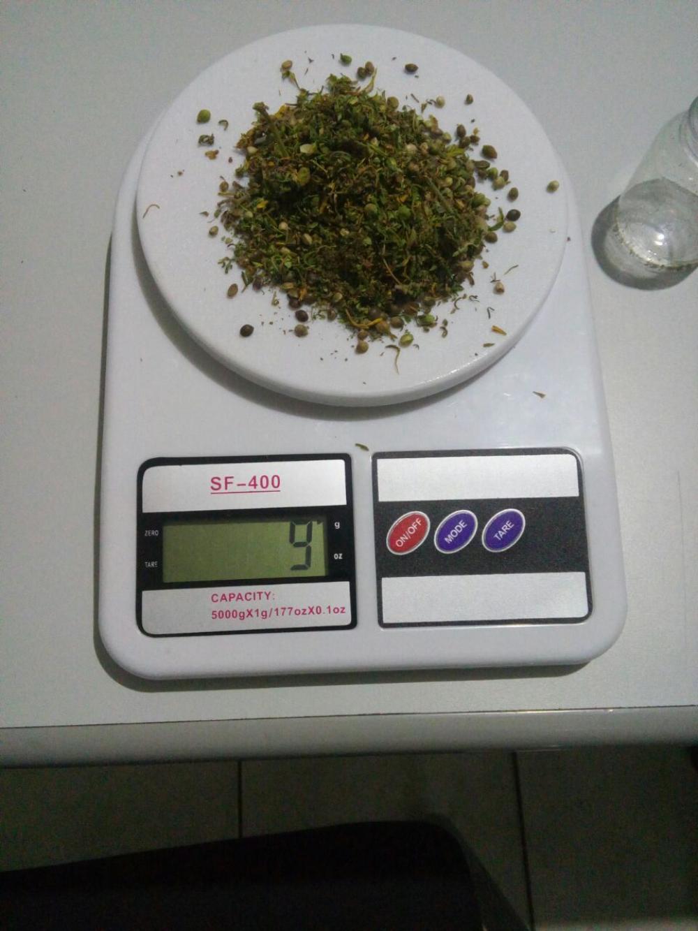 Diante dos fatos foi dado voz de prisão ao mesmo e encaminhado a sede do 2º pelotão PM de Chopinzinho onde foi realizada a busca minuciosa em todos os envolvidos devido à suspeita de possuir mais entorpecentes. Foi pesado a droga que totalizou 09 gramas de substancia análoga a maconha.