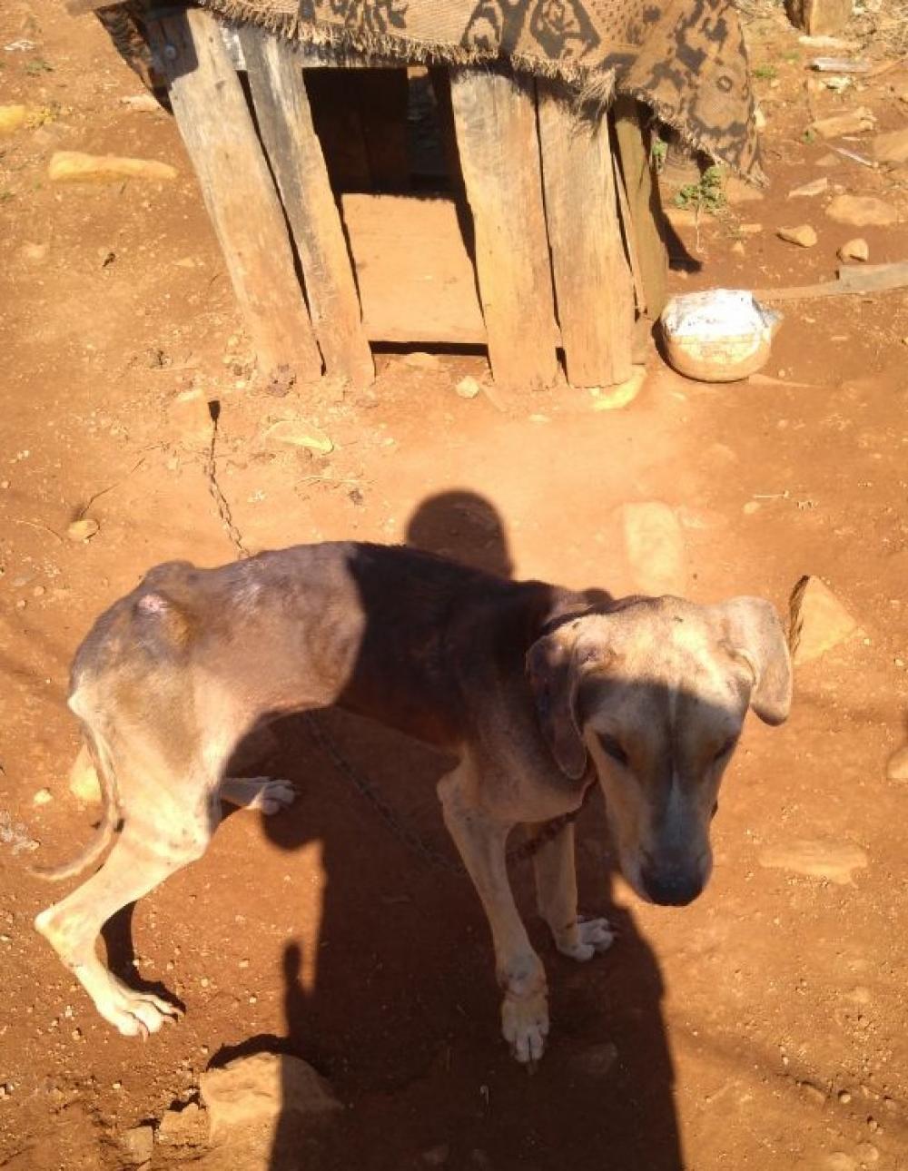 A equipe policial de Coronel Vivida realizava patrulhamento na rua Primo Zeni, bairro São José Operário, quando visualizou um cachorro acorrentado ao lado de uma residência, o qual estava em estado crítico de desnutrição e com muitas feridas no corpo.