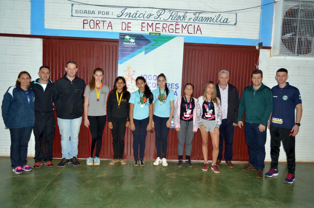 No feminino B, as duplas classificadas são: Maria Gabriela Delagrave Mangoni e Vanessa Venazzi (ouro), da Escola Estadual Linha Aparecida, de Chopinzinho, e as gêmeas Isadora e Isabela Ribeiro Assoni, do Colégio Estadual Arnaldo Busato, de Coronel Vivida. O terceiro lugar, mas sem classificação para a macro ficou com a dupla Julia Vitória do Prado da Silva e Ana Cristina Resmini, do Colégio Estadual Vilma dos Santos Disenha, de Mangueirinha.